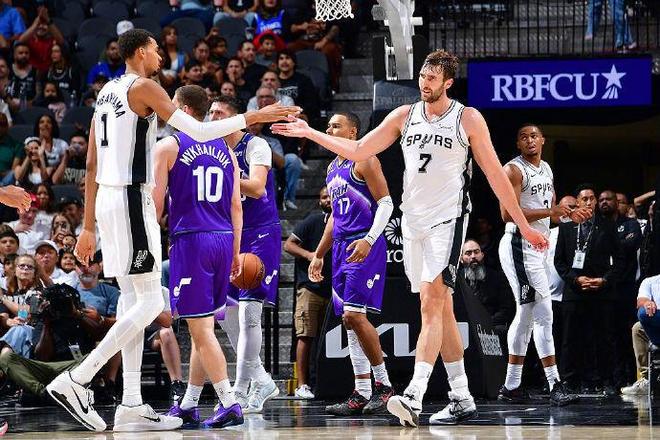 文班亚马这边状态火热,在场上直接降维打击,打了15分钟,10投6中,罚球10中9,拿到全队最高的22分,还有7篮板3助攻,还多次上演暴扣。新赛季的文班亚马也是备受期待,休赛期他进行了很多训练,而他也将决定马刺能在西部排在什么位置。此外,本场榜眼秀哈珀迎来首秀,6中4拿到9分。