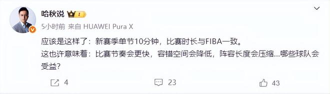 CBA确定重大改革,单节时间缩短为10分钟,有三利一弊!